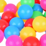 Hozzon színes robbanást és örömöt a gyermek sarkába vagy medencéjébe ezzel a színes műanyag golyókészlettel. Minden golyó átmérője 6 cm, könnyű és tartós, ideális a biztonságos játékhoz. Olyan anyagból készült, amely könnyen visszatér eredeti alakjához nyomás után, így tökéletes a gyermekjátékokhoz.