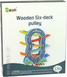 Fából készült versenypálya tökéletes játék a legkisebbek számára. Segít a gyermeknek megismerni az alakzatokat, színeket, és fejleszti a logikai gondolkodást, órákon át tartó szórakozást és felfedezést nyújtva.
