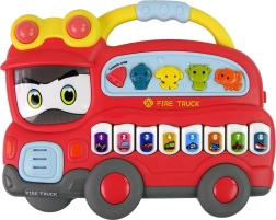 A játék pontosan kiváló minőségű anyagokból készült élénk színekben és tűzoltóautó mintával, amelyek játékra csábítanak. Világító elemek vonzzák a gyermek figyelmét és kiegészítő hangok segítik felfedezni a világot.