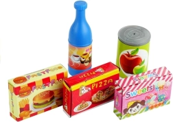Ez a játék 3 éves kortól ajánlott, és összesen 50 darabot tartalmaz: gyümölcsök, zöldségek, sajtok és klasszikus ételek, például pizza, hot-dog vagy chips. A gyerekek órákig élvezhetik a valósághű játék szettet.