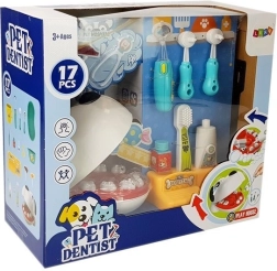 Szórakoztató készlet kis fogorvosoknak és állatorvosoknak kutyafejjel és élethű eszközökkel. A kivehető fogaknak, a világító tükörnek és a biztonságos, nem mérgező anyagoknak köszönhetően a gyerekek fejlesztik finommotorikájukat, megtanulják a fogápolás alapjait, és csökkentik a fogorvostól való félelmet. CE tanúsítvány, EN 71 szabvány.