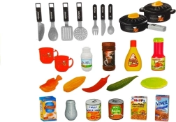 A csomag része egy gazdag kiegészítőkészlet: edények, evőeszközök, élelmiszerek és eszközök a sokoldalú játékhoz. A konyha támogatja a szerepjátékokat, a szókincs fejlődését és a közös játékot.