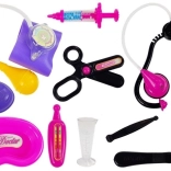 Fiatal orvos készlete kézitáskában, amelyet bármikor magával vihet, és siethet segíteni. Ez egy játék minden gyermeknek, aki szeretné megismerni a körülötte lévő világot, és a jövőben orvos szeretne lenni. A kis felfedező a mellékelt tartozékoknak köszönhetően megvizsgálja és kezeli betegeit: anyát, apát, családtagokat, valamint a babáit vagy a szeretett plüssmackóját.