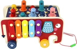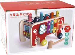 A készlet egy elefánt mintás, fából készült kisautóból áll, amely felkelti a legkisebb játékosok figyelmét. Az autó tetején színes földalatti állatfejek találhatók, amelyek a „Whac-a-Mole” játék célpontjai. A gyerekek a mellékelt kalapácsokkal próbálják leütni őket, miközben fejlesztik ügyességüket és finommotoros koordinációjukat.