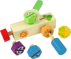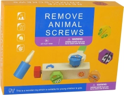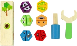 Szórakoztató fa készlet kis barkácsolóknak, amely fejleszti a finommotorikát, a logikus gondolkodást és a kreativitást. A gyerekek a kulcs és a csavarhúzó segítségével becsavarhatják és kicsavarhatják az állatmintás, színes csavarokat, miközben gyakorolják a fogást és a kéz–szem koordinációt. Minden minőségi fából készült és nem mérgező festékkel van színezve.