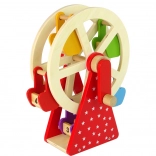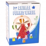 Vigye haza a vásár hangulatát ezzel a minőségi, gyerekeknek készült fa óriáskerékkel. A készlethez öt aranyos állatfigura és számozott gondolák tartoznak az első számolási próbálkozásokhoz. Az oldalsó kurblinak köszönhetően a kerék könnyen forgatható, és fejleszti a finommotorikát, a kéz–szem koordinációt, valamint az ok–okozati összefüggések megértését. Minőségi fából készült, biztonságos festékekkel színezve.