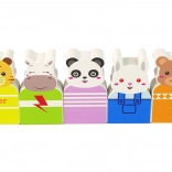 Öt figura (panda, tigris, nyuszi, medve, víziló) és a gondolákon lévő számok játékos formában segítik a színek és az első számok tanulását.