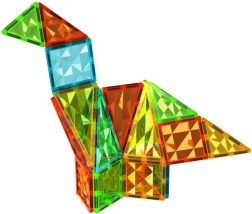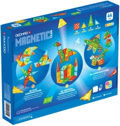 A GEOMAG Magnetic Tiles 44 egy kreatív mágneses építőkészlet, áttetsző elemekkel négy élénk színben (piros, sárga, zöld, kék). A minden oldalon elhelyezett mágnesek ragasztó nélkül is gyors és erős kapcsolódást tesznek lehetővé, így a gyerekek az egyszerű 2D formáktól a komplex 3D szerkezetekig bármit megalkothatnak. A látványos színhatásnak köszönhetően az elemek drágakövekre emlékeztetnek, a kész alkotások pedig szó szerint ragyognak.