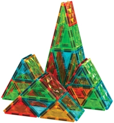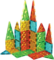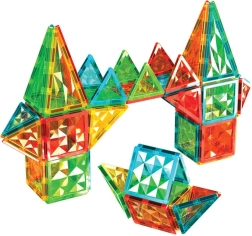 Fedezd fel a kreatív építés örömét a fényes, fazettált felületű, áttetsző négyzetekkel és háromszögekkel. A mágneses élek intuitívan kapcsolódnak egymáshoz, így a kis kezek is könnyedén építenek stabil tornyokat, rakétákat és más fantáziadús objektumokat – bonyolult bepattintás nélkül.