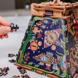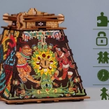 Engedd, hogy magával ragadjon az azték piramis titka. Több mint 200 darabbal ez a fa puzzle rejtvények felfedezésére és logikai feladatok megoldására hív. A mechanikus zárak megnyitása egy rejtett helyet tár fel, ahová személyes üzenetet vagy más apróságot helyezhetsz. Steve Simpson és Joaquín Nava illusztrációi révén a puzzle nemcsak kihívás, hanem egyben műalkotás is.
