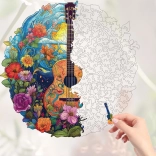 Ez a gyönyörű puzzle virágokkal díszített gitár motívummal készült, kiváló minőségű 5 mm-es fából, amely környezetbarát és hangsúlyozza az ökológiai tudatosságot. Minden darabot pontosan lézerrel vágtak, ami megkönnyíti az összerakást és tökéletes illeszkedést biztosít. A UV digitális nyomtatásnak köszönhetően a kép világos és részlet gazdag, ami javítja az összerakási élményt.
