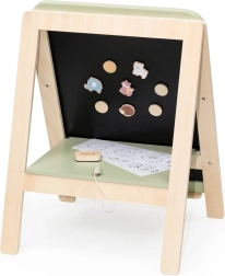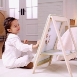 A PolarB fa tábla remek eszköz a kis művészeknek, támogatja kreatív játékukat és a finommotorika fejlesztését. A táblának két oldala van – egy klasszikus krétás felület és egy fehér mágneses, törölhető felület. Az állítható magasságnak köszönhetően a gyermek növekedéséhez igazítható, így a fejlődés különböző szakaszaiban is kényelmes játékot biztosít.