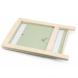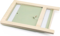 A tábla kétféle felületet kínál – az egyik oldal krétához, a másik mágneses, szárazon törölhető.