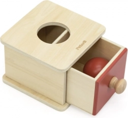 A fiókos, labdás fa doboz megtanítja a gyermeknek, hogy a tárgyak akkor is léteznek, amikor nincsenek a látómezőben. Támogatja a koncentrációt, a türelmet és az első logikai összefüggések megértését a bedobás és az előkeresés során.