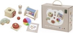 Komplex készlet a legkisebbeknek 6–12 hónapos korban, amely a fa és az érzékszervi játékokat ötvözi a szórakoztató tanuláshoz. Támogatja az érzékszervi fejlődést, a kéz-szem koordinációt, valamint a finom- és nagymotorikát. Az ergonomikus formák, a biztonságos anyagok és a Montessori elvek minden nap felfedezésre ösztönzik a babát.