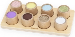 A változatos felületű tapintó tábla felébreszti a kíváncsiságot, és segít a gyerekeknek megkülönböztetni a textúrákat és a színeket. Támogatja az érzékelési integrációt, a szókincset és az ujjak finommotorikáját.