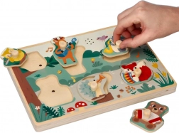 Nagy elemek praktikus fogantyúkkal, amelyek jól kézre állnak és pontosan illeszkednek a formákba. A gyerekek gyakorolják a fogást, a pontosságot és a türelmet a kirakás során.