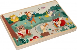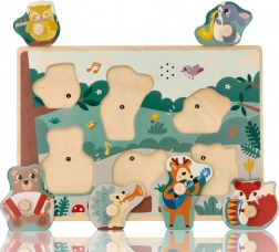 Ez a fa hangos formaberakó erdei motívummal játékos módon ismerteti meg a gyerekeket a hangszerekkel. Minden színes, állatos elem praktikus fogantyúval rendelkezik a könnyű fogásért, és a megfelelő helyre téve a hozzá tartozó hang szólal meg, ami motivál az ismételt játékra és a felfedezésre.