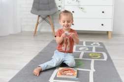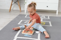 A darabok megfelelő kivágásokba illesztése erősíti az ujjakat, a szem–kéz koordinációt és a türelmet. Ideális a kis kezek számára 18 hónapos kortól.