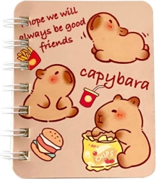 A Kapibara sorozat aranyos jegyzetfüzet-készlete egyedülálló, 4 darabból álló csomag, amely minden kapibara-rajongónak örömet szerez. A kompakt A7-es formátumú (105 × 82 mm) füzetek nemcsak praktikusak, hanem ideálisak a mindennapi tervezéshez, jegyzeteléshez vagy vázlatkészítéshez is. Mindegyik 80 vonalas oldalt tartalmaz, puha, színes, kapibara mintás borítójuk pedig azonnal magára vonja a figyelmet. Kis méretüknek köszönhetően könnyedén elférnek táskában, hátizsákban vagy akár zsebben is, így ideálisak utazáshoz, iskolába, munkába vagy megbeszélésekre.