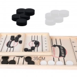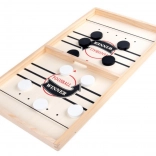 Szórakoztató családi társasjáték strapabíró fából, két játékos számára. A cél, hogy az összes korongot átlődd az ellenfél oldalára a középső nyíláson keresztül. Gyors, izgalmas és biztonságos játék, amely fejleszti a reflexeket és a pontosságot, kompakt méretű, és 3 éves kortól alkalmas.