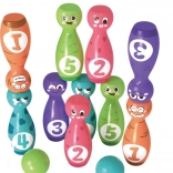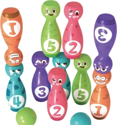 A készlet két színes golyót is tartalmaz, amelyek lehetővé teszik a klasszikus tekejátékot. Ráadásul a bábuk számozottak, ami oktatási elemet visz a játékba: segít a számlálás és a számfelismerés elsajátításában. Remek szórakozás, amely mosolyt csal minden gyermek arcára!