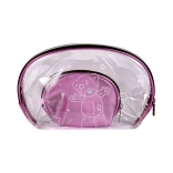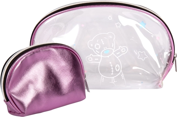 A praktikus kozmetikai táskaszett két méretet kínál különböző igényekhez, amelyeket a bájos Me to You maci díszít. A nagyobb táska mérete: 26 × 18 cm A kisebb táska mérete: 15,5 × 12,5 cm Anyag: PVC műanyag A táskák vízzel lemoshatók.