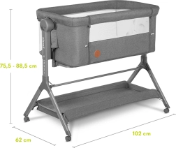A levehető oldalsó panel lehetővé teszi a közös alvást a szülőkkel, ami nemcsak kényelmes, hanem biztonságos is a szülők ágyához rögzíthető szíjaknak köszönhetően. Emellett értékelni fogja a játékok vagy szükséges dolgok tárolóhelyét és a praktikus táskát, amely megkönnyíti az összecsukott kiságy szállítását.