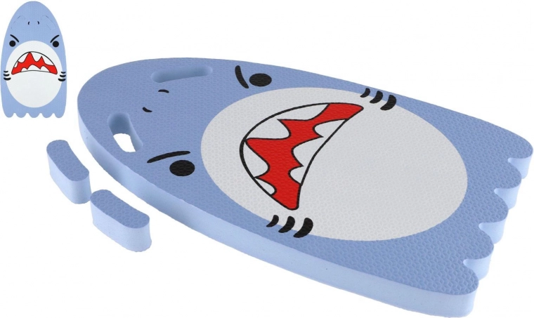 A deszka tartós, könnyű és nagy felhajtóerejű habból készül, amely kiválóan lebeg és kellemes tapintású. A vidám cápa dizájn játékra és gyakorlásra ösztönzi a gyerekeket, növelve önbizalmukat a vízben. Csak felnőtt felügyelete mellett használható.