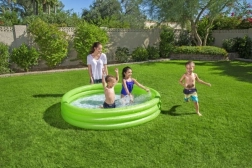 Méret: 1,83 m x 33 cm, 3 színváltozat – zöld, kék, piros. A csomag tartalma: felfújható medence, javítófolt