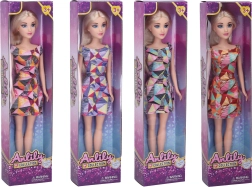 A ruhák négy különböző változata lehetővé teszi a kedvenc stílus kiválasztását – a vidám színektől a finom mintákig. A baba alkalmas önálló játékra is, és a gyerek gyűjteményének bővítésére.