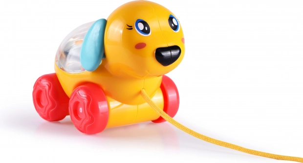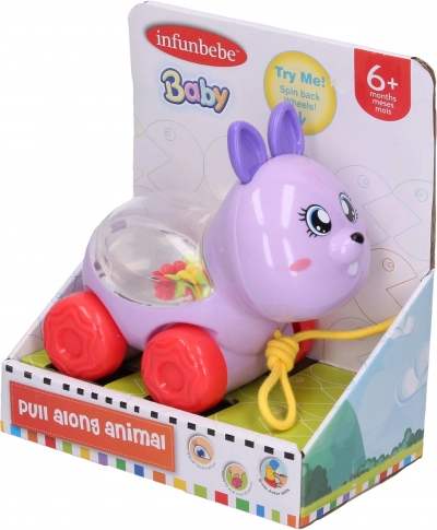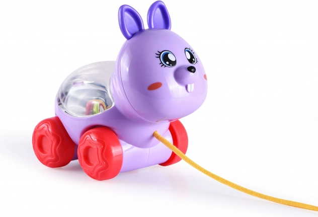 A zsinóron húzható, 12 cm-es aranyos állatka minden gyermeket megörvendeztet. A játék kerekeken gurul, és előre húzáskor az állatka hátán megmozdulnak a golyók. Választható 3 változat – nyuszi, elefánt vagy kutya.