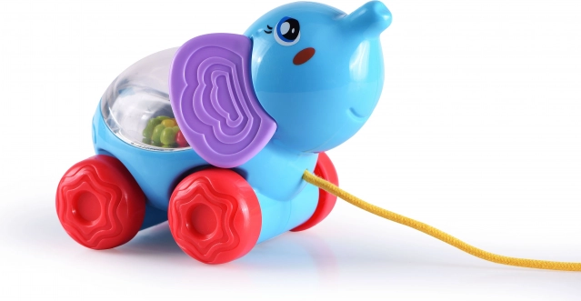 Ez a húzható állatka zsinórral könnyen irányítható, és a kerekeknek köszönhetően egyenletesen gurul a padlón. Menet közben a hátán mozognak a golyók, ami a játéknak szórakoztató és látványos hatást kölcsönöz.