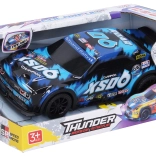 Kompakt lendkerekes versenyautó, amely az első motorháztető megnyomására fény- és hangeffekteket kínál. A kék fényhatásnak és a praktikus 19,5 × 8,5 × 5,5 cm-es méretnek köszönhetően otthoni és útközbeni akciódús játékra egyaránt ideális. Az elemek a csomag részét képezik, így a szórakozás azonnal kezdődhet.