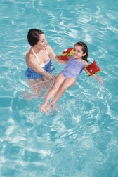 Az úszókarok könnyen felfújhatók és leereszthetők, kevés helyet foglalnak a táskában, és készen állnak a medencéhez, tóhoz vagy a tengerhez. A nem kívánt levegővesztés ellen védő szelepeknek köszönhetően játék közben végig tartják a formájukat.
