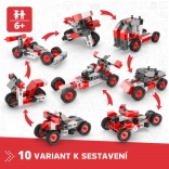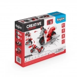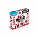 Az ENGino Creative Builder készlet egyszerre hozza el a gyerekeknek a technika és a fantázia világát. A piros–fehér–szürke színösszeállítású, strapabíró műanyag elemekből motorkerékpárok, buggyk és kis autók építhetők, a jól átgondolt kerék- és csatlakozórendszernek köszönhetően pedig pillanatok alatt új modellé alakíthatók. Egy doboz, 10 modell és végtelen órákon át tartó szórakozás.