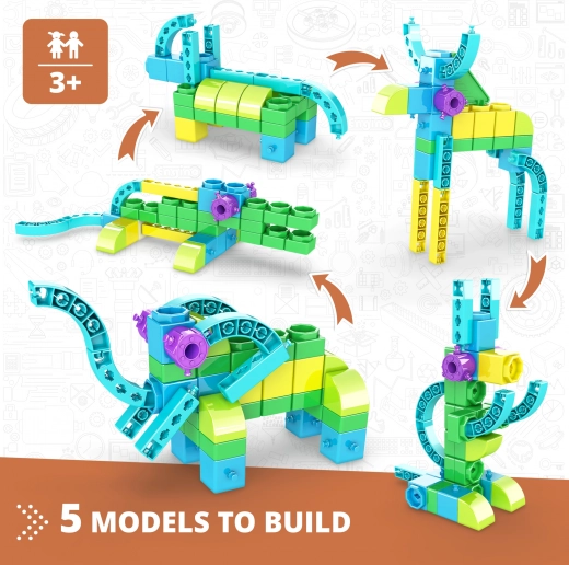 Engino építőjáték - Tanuljon és fedezze fel vadállatokkal, tartalmaz 5 modellt és számos oktatási tevékenységet.