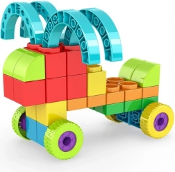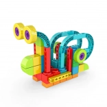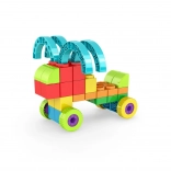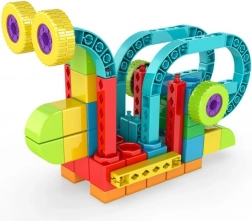 Masszív, színes elemek snap-click rendszerrel kapcsolódnak. A gyerekek biztonságosan és önállóan gyakorolhatják a finommotorikát és a koordinációt.