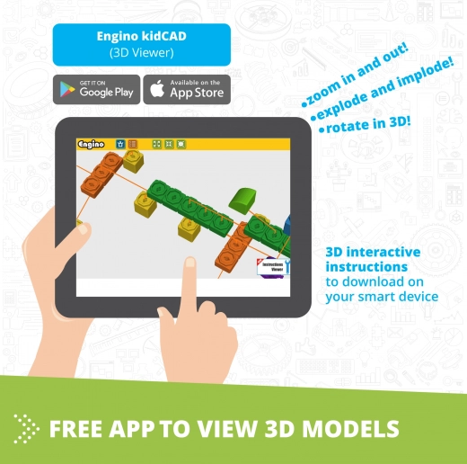 Az Engino kidCAD® alkalmazás 3D modelleket kínál a jobb megértés és az interaktív játék érdekében.
