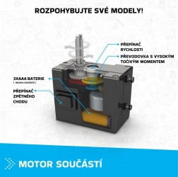 Az integrált motor sebességváltóval lehetővé teszi az irány és a sebesség változtatását. A gyerekek gyakorlatban ismerhetik meg a mechanikát és a fogaskerék-áttételek működését.