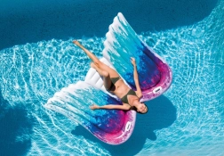 A Intex márkájú Felfújható nyugágy Angyalszárnyak ötvözi a design és funkcionalitást. Valós 3D megjelenésével kitűnik majd bármely strandon vagy medencénél. Ez a termék 14 évestől ajánlott, és biztosítja a kényelmes kikapcsolódást a vízen.