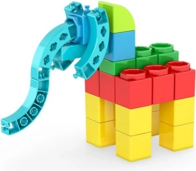 Építs állatokat, gépeket és járműveket nagy, színes és könnyen összeilleszthető elemekből. A variálhatóság fejleszti a képzeletet és a finommotorikát.