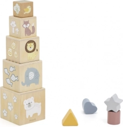 Öt kocka és a hozzájuk illő formák segítenek megérteni a méreteket, a számokat és a térbeli tájékozódást. A készlet támogatja a logikus gondolkodást és a finommotorikát.