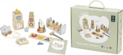 A biztonságos kialakítás sima élekkel, a tartós faelemek és az intuitív tevékenységek nagyszerű választássá teszik a szettet a mindennapi játékhoz és ajándéknak egyaránt. A praktikus, fogantyús dobozos csomagolás megkönnyíti a hordozást és a tárolást.