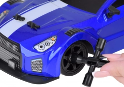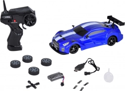 - RC autó, 2,4 GHz-es vezérlő, 7,4 V 500 mAh akkumulátor, drift/terep gumi szett, kerékkulcs, vízadagoló, USB töltő, karosszéria rögzítő kapcsok