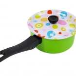 A lábasok, kisebb nyeles lábas és a fedős serpenyő úgy néznek ki, mint az igaziak – kényelmes fogantyúkkal és fényes felülettel az autentikus főzési élményért.