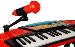 A szett mikrofont és tartót is tartalmaz, így a gyermek egyszerre énekelhet és játszhat. A billentyűzeten külső MP3-lejátszó számára rekesz található, amely lehetővé teszi a kedvenc dalok hallgatását, és kiváló inspiráció karaoke-hoz vagy családi fellépésekhez.