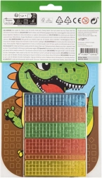 Ez a kreatív készlet gyors és szórakoztató alkotáshoz ideális. Elég, ha követed a sablon színeit, és a fémes, habból készült négyzeteket a megfelelő mezőkre ragasztod. Az eredmény egy gyönyörű, fényes dinoszaurusz-mozaik, amely kiállításra vagy egyedi ajándéknak is kiváló.