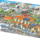 Ez a nagy képeskönyv örömet szerez minden kis vonatrajongónak. A gazdag, gondosan kidolgozott illusztrációkon a gyerekek igazán közelről pillanthatnak be a vasút világába – a mozdonyoktól és vagonoktól kezdve a nyüzsgő pályaudvarokon át a csendes vidéki állomásokig. Minden oldal tele van apró részletekkel és szereplőkkel, akiket a gyerekek megkereshetnek, és együtt átélhetik a történeteiket.