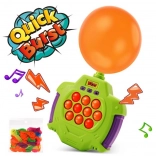 Játék közben a lufi addig nő, amíg ki nem pukkan, ekkor a játék véget ér. A konzol hanghatásokkal van felszerelve, amelyek dinamikát és energiát adnak. Három darab AAA elemmel működik (nem tartozék), és tartalmazza a Pop-It játékot, a töltőkábelt és egy készlet színes lufit.